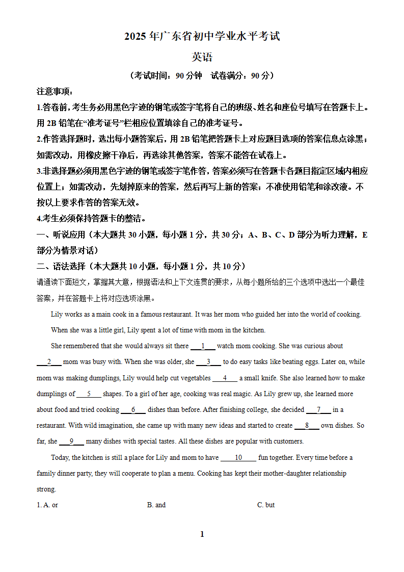 首页 英语试卷 中考英语 2025年中考广东省英语真题+答案解析Word版