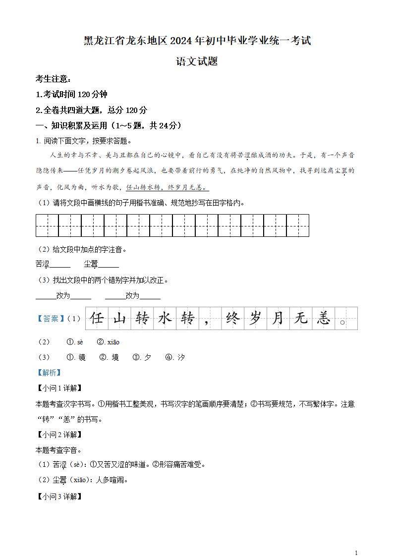 首页 语文试卷 中考语文 2024年中考黑龙江省龙东地区语文真题+答案解析Word版