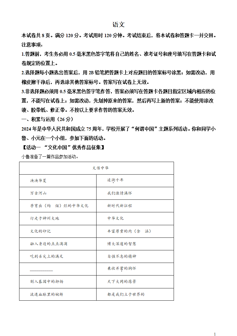 2024年中考山东省语文试题+答案解析Word版