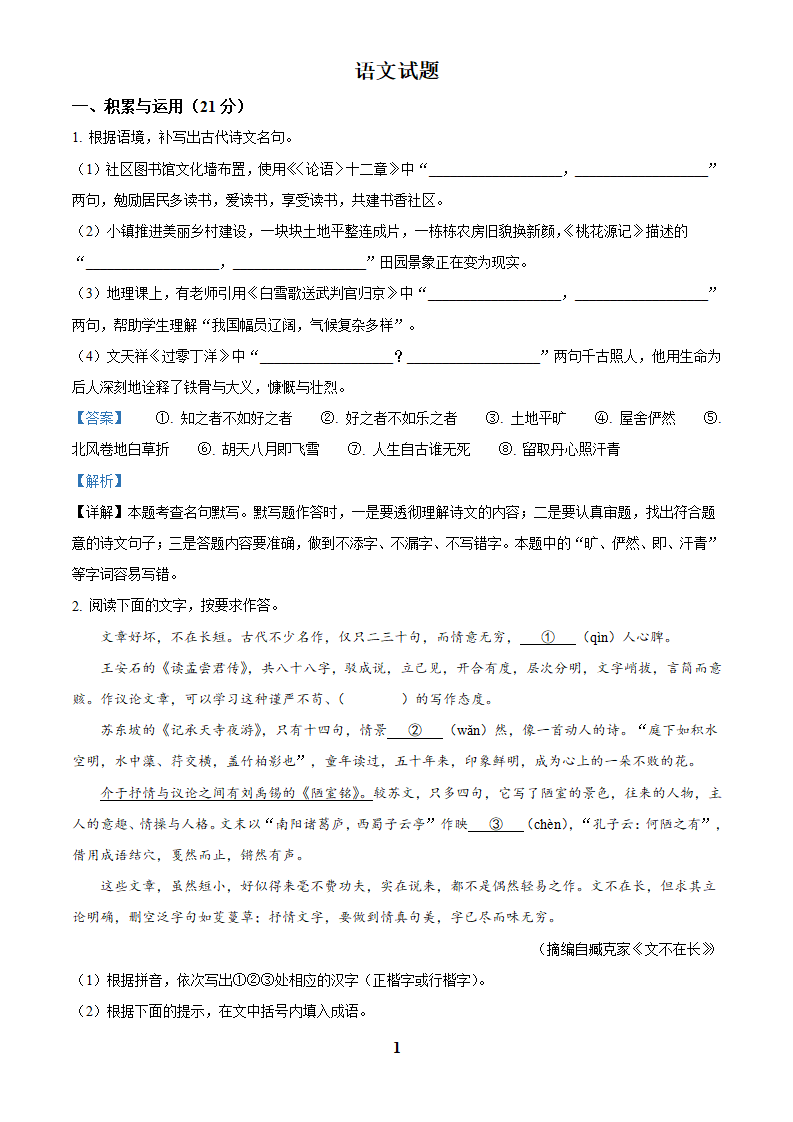 首页 语文试卷 中考语文 2025年中考福建省语文真题+答案解析Word版